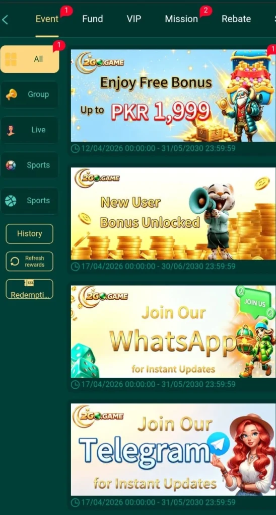 2GO Game APK is a mobile gaming app where users can enjoy different types of interactive and entertaining games. By playing these games, users can have fun as well as earn real rewards. The digital earning platform also offers regular rewards like daily login bonuses, VIP rewards, and registration bonuses. Because of this, players stay active and remain interested in the app.