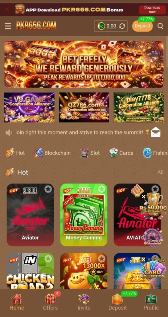 PKR656 Game is a mobile application where you can play different types of games and earn real rewards, such as slot games, lottery games, and fishing games. The digital app is unique because it is specially designed for Pakistani players. The Android platform is very easy to use, so beginners can also play and enjoy without any difficulty. It also has high quality graphics, which makes the gaming experience more fun and exciting.